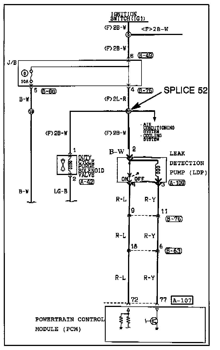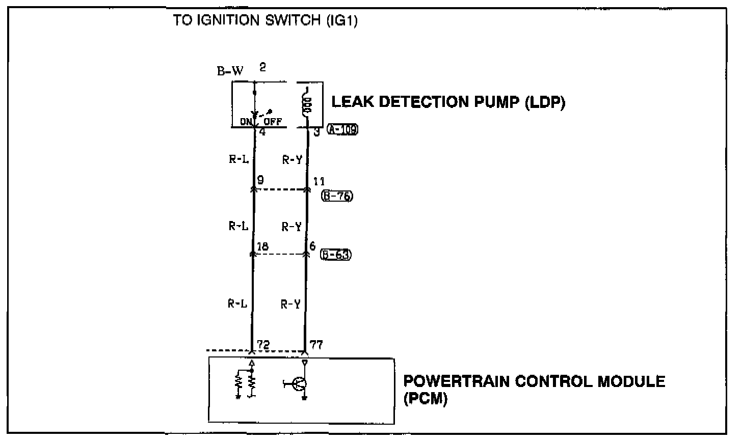 (1) If DTC 18 is not set, the B-W wire between the LDP and splice 52 may be damaged. Repair or replace the wiring harness as necessary. Then go to the Readiness Test of this bulletin.