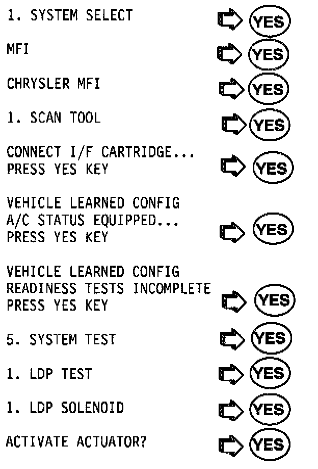 3. Activate the LDP solenoid by following the MUT-II selection sequence.
