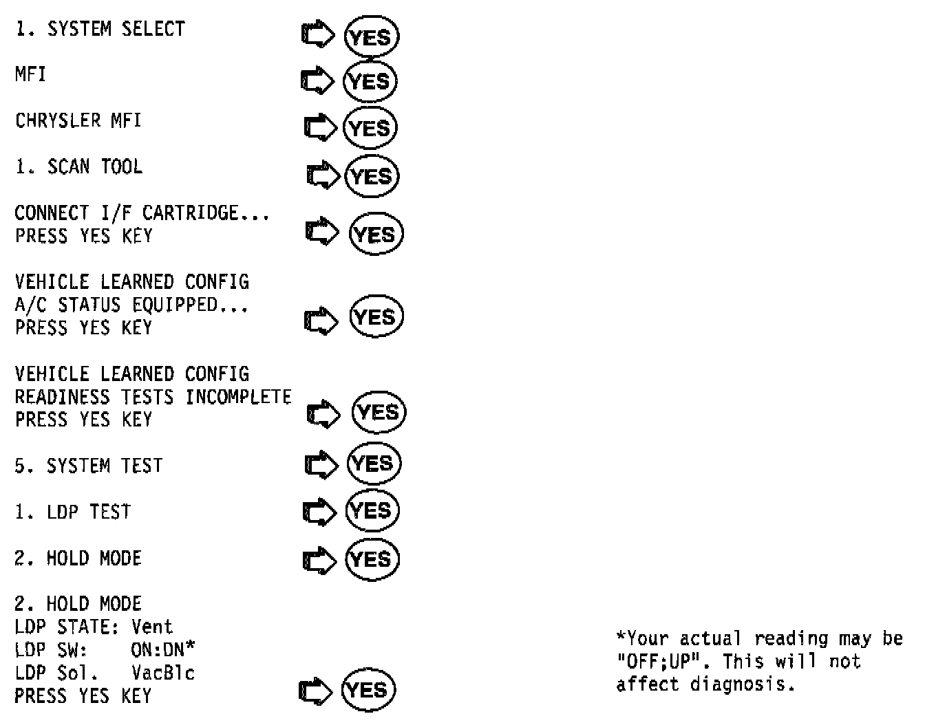 b. If the cyclic tapping is not felt, there is a concern with the LDP circuit or its components. Go to Step 5.