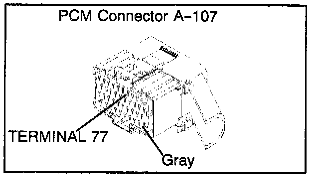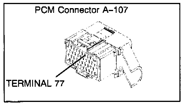 9. Turn the ignition key to OFF. Disconnect PCM connector A-107 and inspect terminal 77 for damage and corrosion.