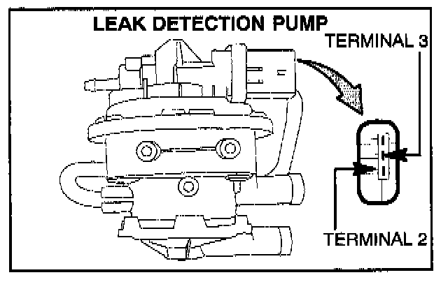 14. The ignition key should be OFF and LDP connector A-109 disconnected. Measure the resistance of the LDP solenoid coil by placing one lead of the DVOM on terminal 2 and the other lead on terminal 3 of the LDP.