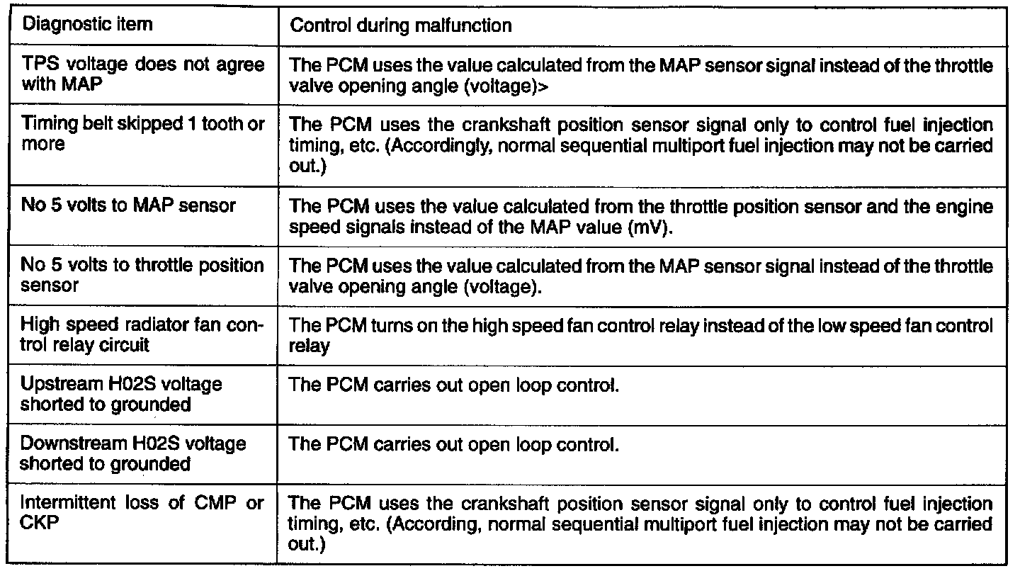 When the PCM detects the following malfunction (5), the PCM carries out fail safe/back-up control. In addition, the corresponding DTC number (s) can be identified by using the scan tool.