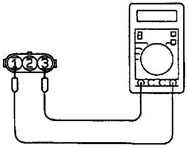 2. Measure the resistance between the throttle position sensor side connector terminal 1 and terminal 3.