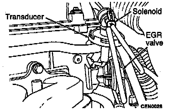 2. Remove EGR valve mounting screws, EGR valve and transducer.