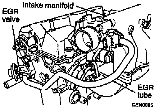 1. Remove screws attaching EGR tube to intake manifold.