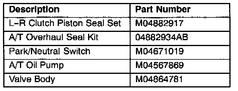 Low-Reverse inner and outer seals made of improved material have been installed on transaxles built after 11/16/95 (transaxle identification number xxxx-2529-xxxx and higher). The improved seals are available as repair parts, and are listed in the PARTS INFORMATION section of this bulletin.