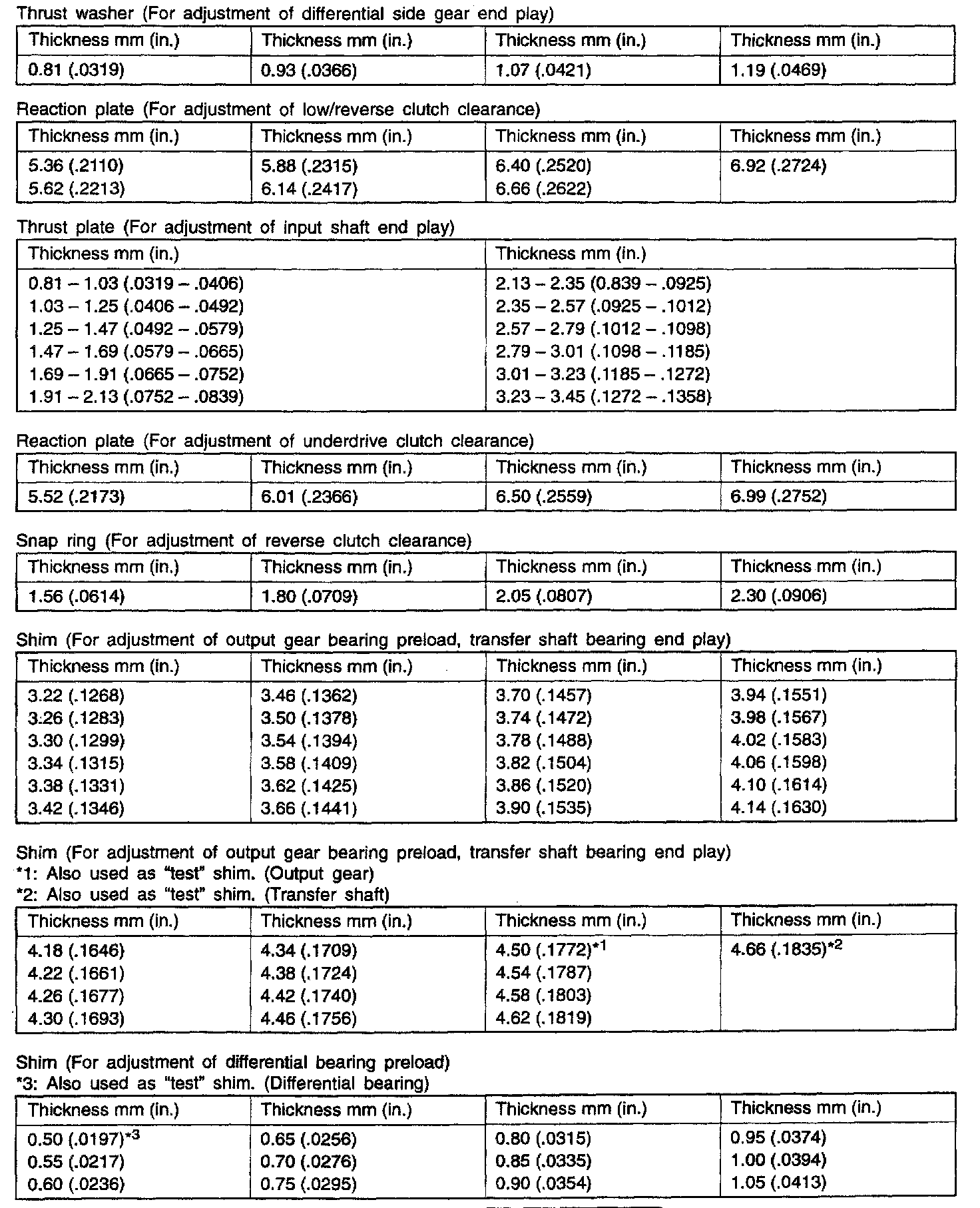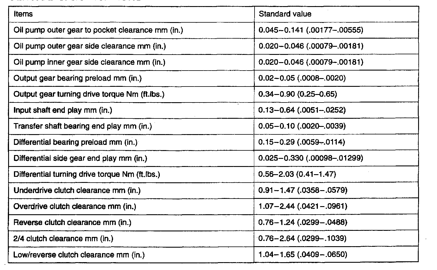 F4AC1 4-spd A/T, Standard Values: