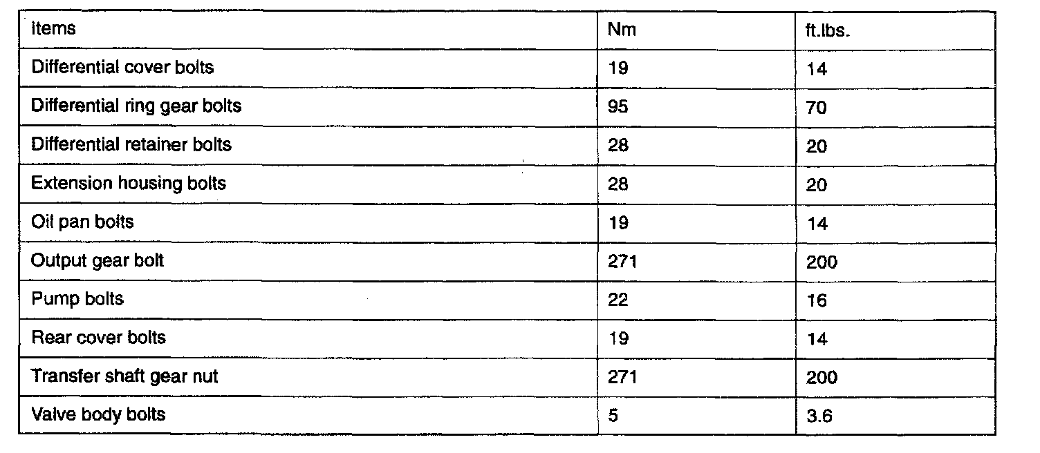 F4AC1 4-spd A/T, Transaxle Torque: