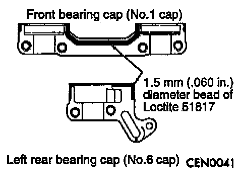 Install right and left camshaft bearing caps No. 2 thru No. 5 and right No.6.