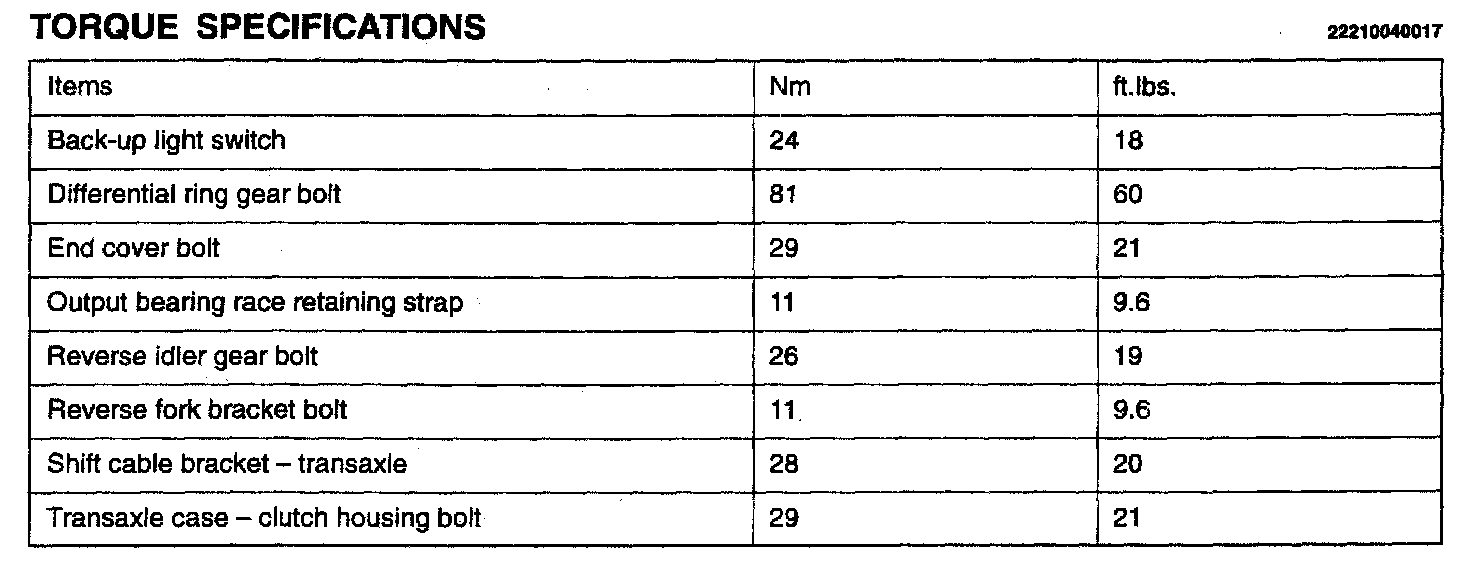F5MC1 5-spd M/T, Transaxle Torque:
