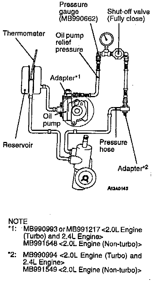 1. Disconnect the pressure hose from the oil pump, and then connect the special tools.