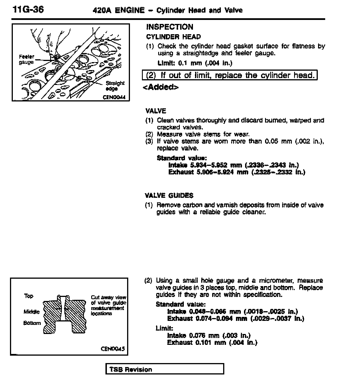 CYLINDER HEAD DISTORTION INSPECTION (420A ENGINE) - SERVICE MANUAL REVISION