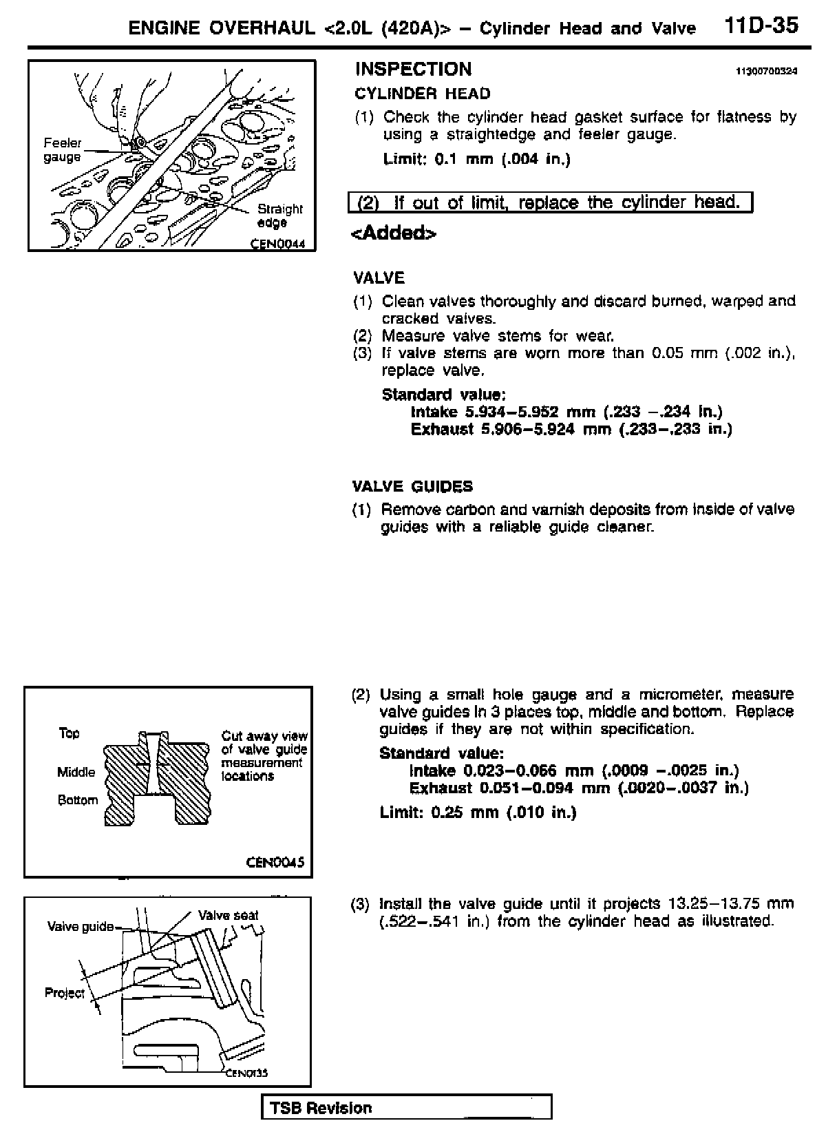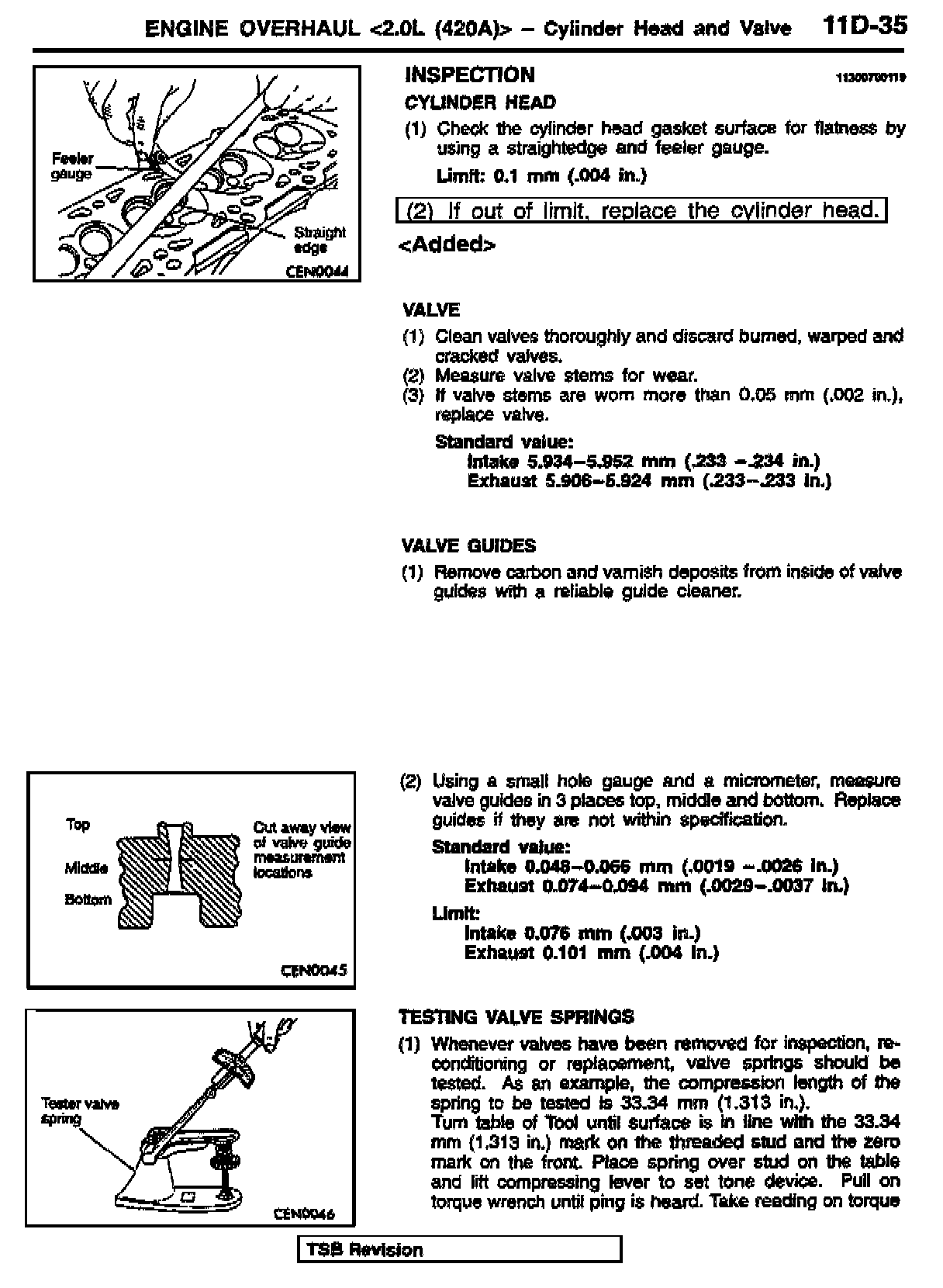 This bulletin contains revised cylinder head distortion inspection procedures for the 2.0L, (420A) non-turbo engine.