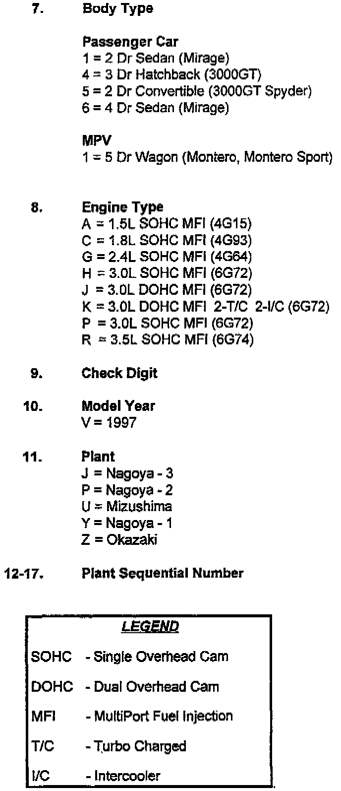 This bulletin contains information to decode the Vehicle Identification Numbers for all 1997 MMSA vehicles. VIN information for previous years is in the chart below.