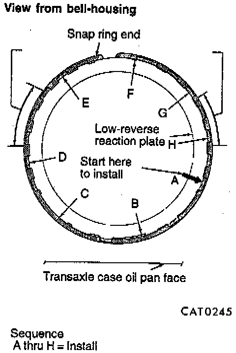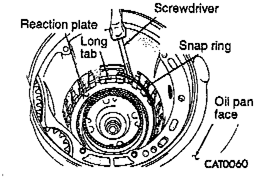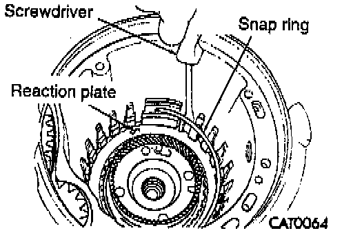 55. Using a screwdriver, install low/reverse reaction plate flat snap ring.