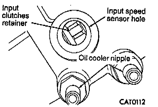 CAUTION: If view through input speed sensor hole is not as shown above, the input clutches assembly is not seated properly.