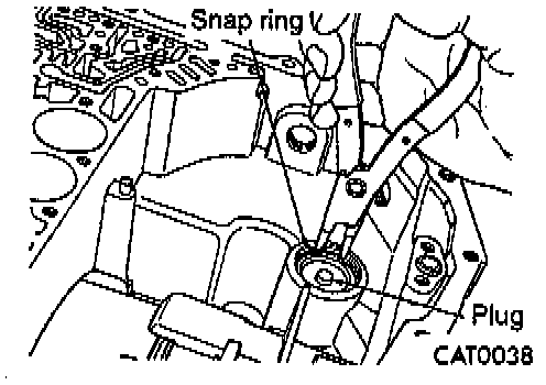 81. Install the snap ring holding the low/reverse accumulator plug (cover) in place.