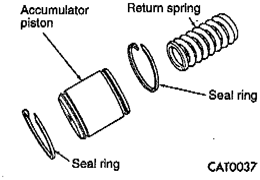 82. Install return spring and two seal rings from the overdrive and underdrive clutch accumulator pistons.