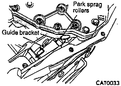 5. Use a screwdriver to push park sprag rollers away from guide bracket.
