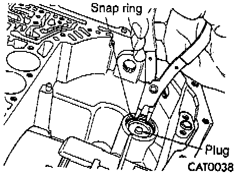 9. Remove the snap ring holding the low/reverse accumulator plug (cover) in place.