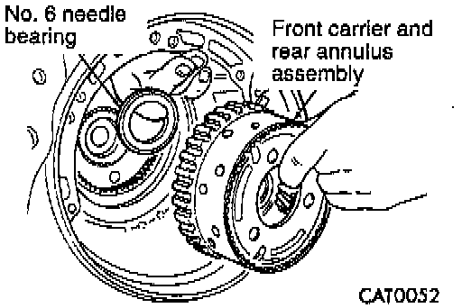 24. Twist and pull to remove front carrier and rear annulus assembly. Remove No. 6 needle bearing.