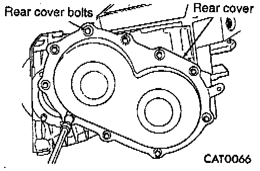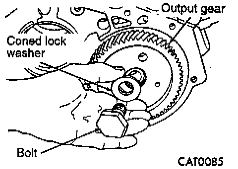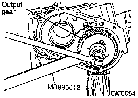 49. While holding output gear with Holder MB995012 or equivalent, loosen output gear bolt.