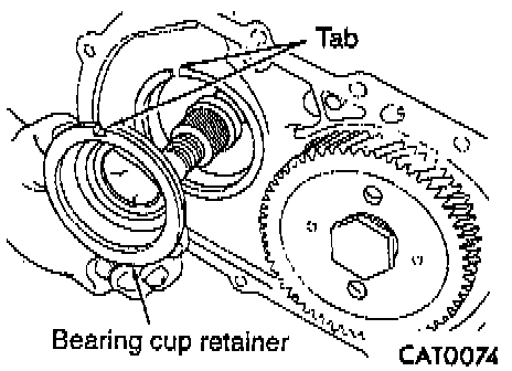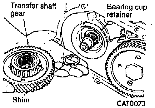 47. Remove oil baffle and bearing cup from transfer shaft.