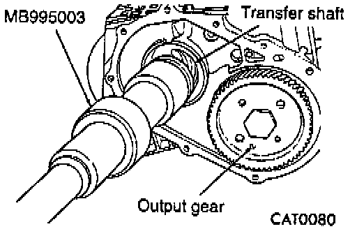 46. Remove transfer shaft with Installer/Remover MB995003 or equivalent.