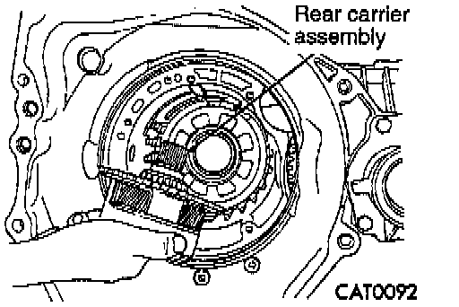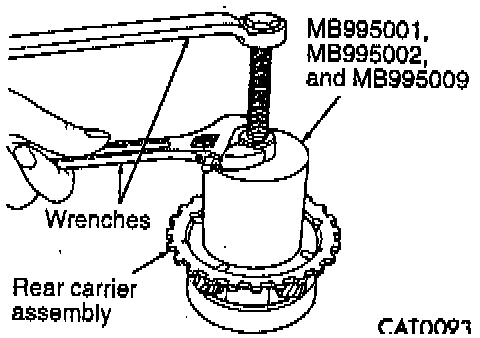 55. Remove gear carrier bearing with Bearing Puller MB995001 and MB995002 and Thrust Button MB995009 or equivalents.