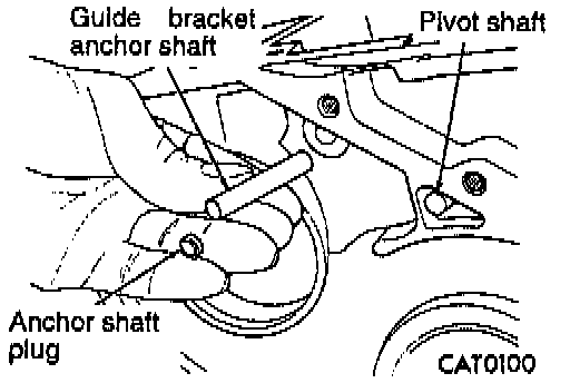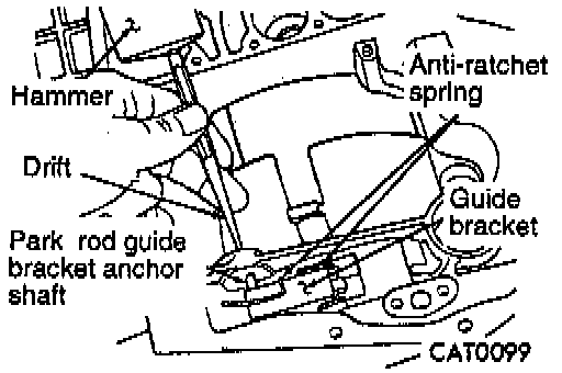 60. Drive out park rod guide bracket anchor shaft with a hammer and drift.