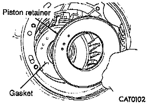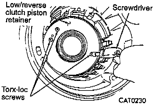 65. Remove Torx-lock screws attaching low/reverse clutch piston retainer.