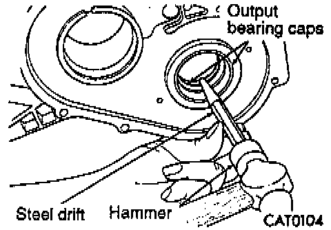 68. Drive out output bearing inner cup with a steel drift and hammer.