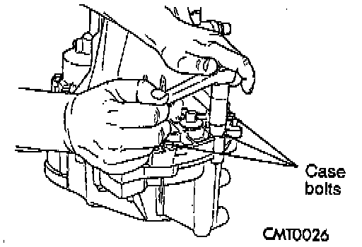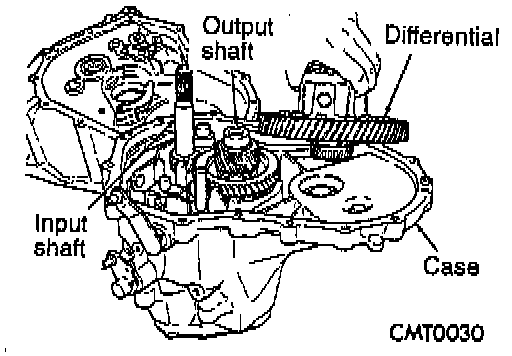 17. Carefully remove transaxle case from the shaft assemblies and bench fixture.