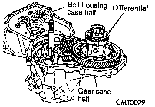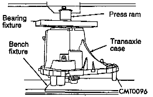 15. Install transaxle gear case and bench fixture onto shop press. Press output and input shaft assemblies out of case.