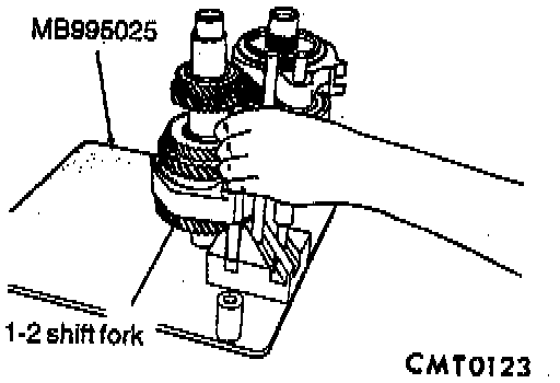 CAUTION: The output shaft assembly is serviced as an assembly. Do not try to repair any component on the output shaft. If the 1/2 synchronizer or gear fails, it is necessary to replace the complete output shaft assembly.