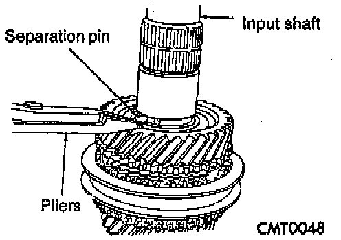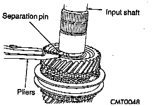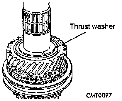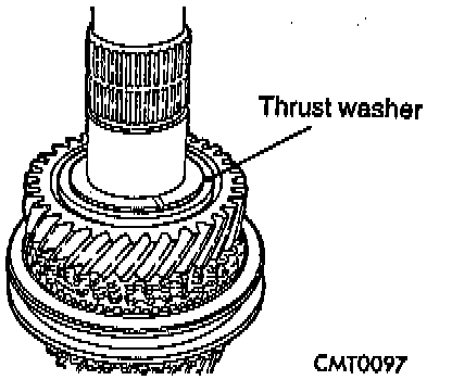 DISASSEMBLYNOTE: Before disassembly of the input shaft, it is necessary to check the synchronizer stop ring gap. Use a feeler gauge to measure the gaps between the stop rings and the speed gears. The correct gaps are listed below:
