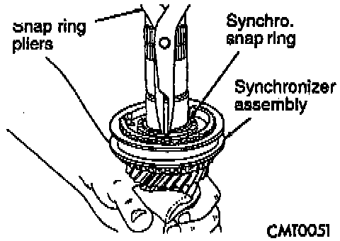 12. Install 5th gear synchronizer snap ring.