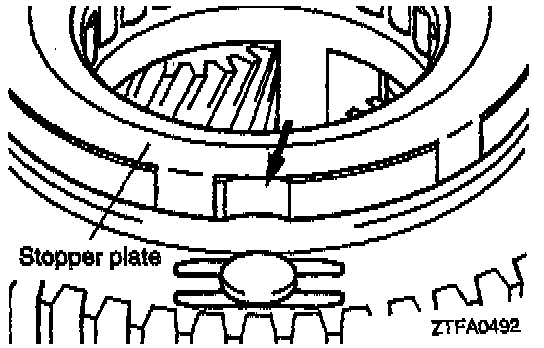 NOTE: Make sure that the stopper plate claw is not located at the groove in the one-way clutch outer race.