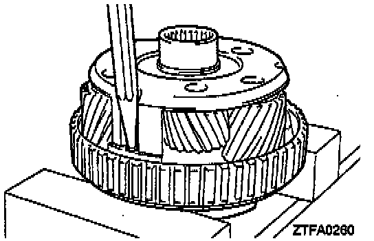 1. Remove the only one short pinion. Use care not to drop and lose the 17 rollers in the short pinion. Do not remove the other short pinions.