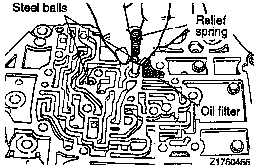 1. Install the oil filter, two steel balls, and spring to the intermediate plate.