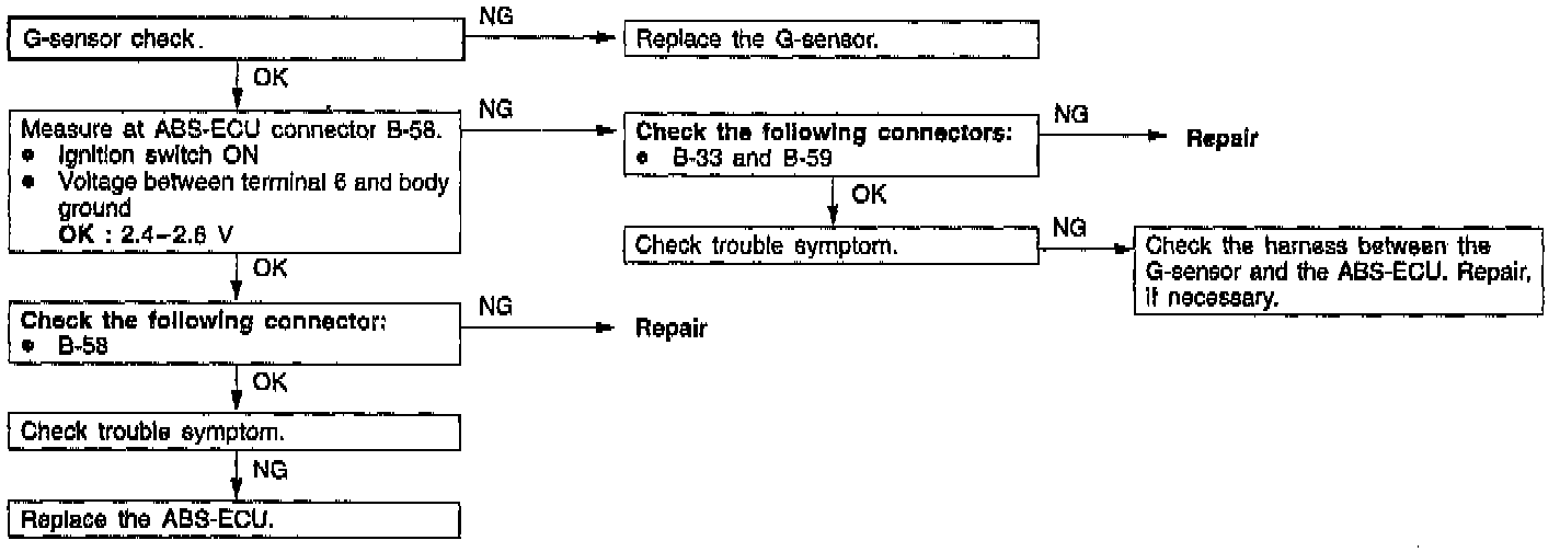 Comment: The ABS-ECU outputs this Diagnostic Trouble Code (DTC) when there is an open or short circuit in the harness of the G-sensor system.