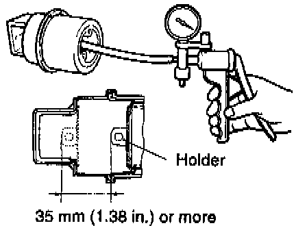 2. Apply negative pressure to the actuator with the vacuum pump and check that the holder moves more than 35 mm (1.38 in.). In addition, check that there is no change in the position of the holder when negative pressure is maintained in that condition.