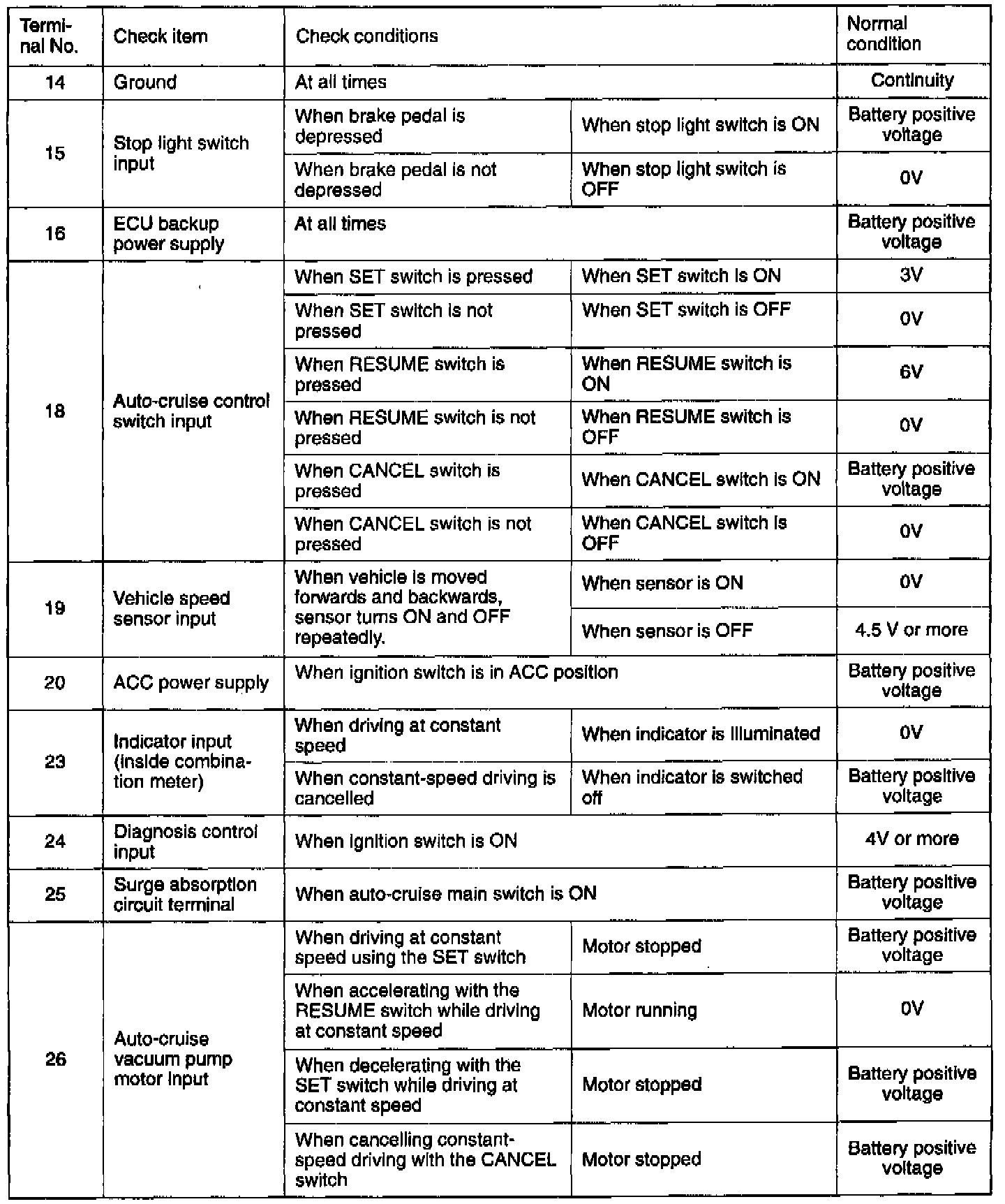 Pinout Values and Diagnostic Parameters