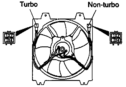 2. In this same condition, apply battery (+) voltage to terminal 3 and grounded terminal 2. Check that the condenser fan motor operates faster at this time.