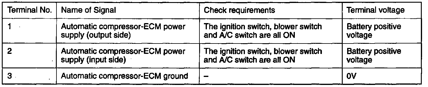 INSPECTION AT THE AUTOMATIC COMPRESSOR-ECM TERMINAL