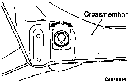 Turn the toe control arm mounting bolt to the left or right by equal amounts to adjust.