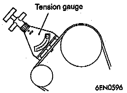 2. Use a tension gauge to measure belt tension. The standard value is 255 - 333 N (57.3 - 75.0 lbs.).