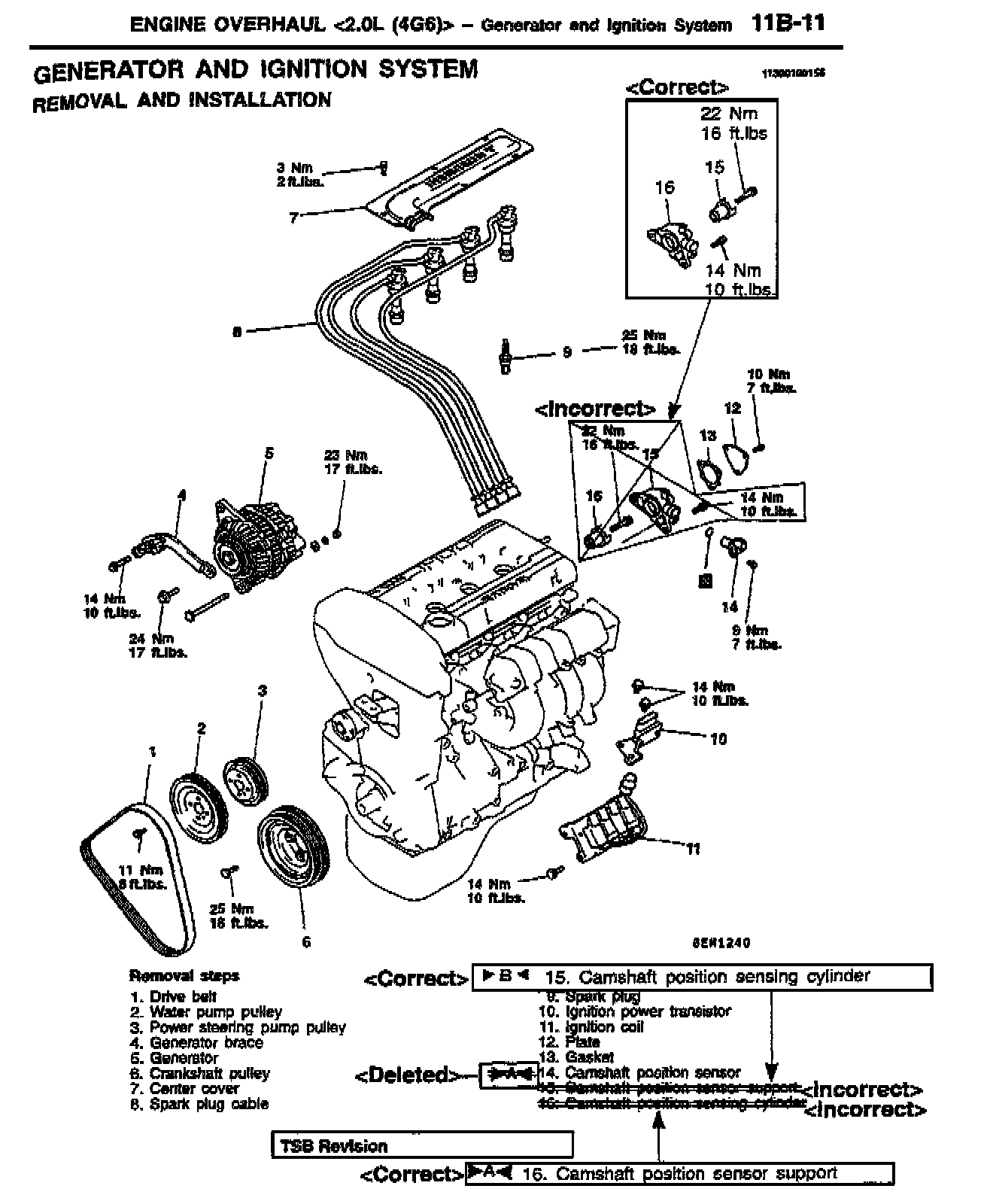 This bulletin changes the removal sequence for the camshaft position sensing cylinder for the 4G63 DOHC turbocharged engine as shown in the 1997 Eclipse & Eclipse Spyder Service Manual, Volume 1.