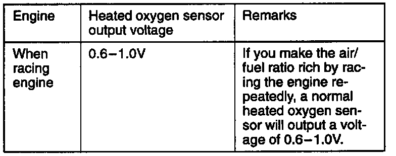 7. While repeatedly racing the engine, measure the heated oxygen sensor output voltage.
