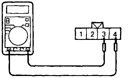 2. Make sure that there is continuity [approx. 12 ohm at 20°C (68°F)] between terminal 3 and terminal 4 on the heated oxygen sensor connector.